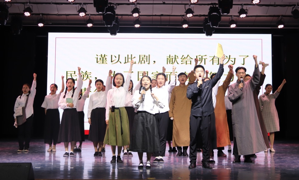 雄关漫道真如铁。《风暴》通过舞台剧的形式体现了五四时期女青年勇于突破、敢于发声、积极破除陈旧观念的时代担当。在慷慨激昂的呐喊声中青年们将解放国家和解放自己联系在一起。从柳条湖畔到五指山下从白山黑水到万亩沧田”,战火弥漫何处言家。诗朗诵《同舟共济》展示中华儿女们在民族生死存亡的危急时刻走上街头以血肉之躯撑起中华民族的气节从学生到工人再到军人他们用鲜血唤醒民众用脊骨擎起苍穹。