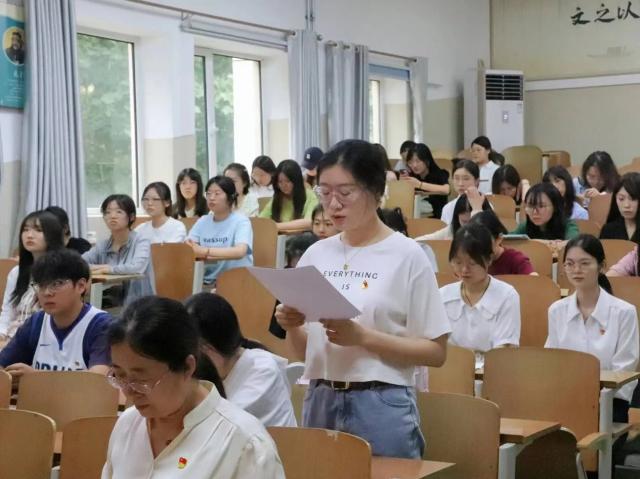 会议在庄严雄壮的国歌声中拉开帷幕。颜珂等22位预备党员逐一向党组织汇报本人在一年预备期内政治、思想、工作等方面的基本情况。转正介绍人王伟伟、贾瑞清、赵文端、张孟涵肯定预备党员学习、生活等方面的成绩并提出意见和建议。随后,正式党员对颜珂等22位预备党员进行投票表决,贾瑞清通报表决结果并宣读支部大会决议:颜珂等22位预备党员思想进步,刻苦学习,严于律己,工作和生活上有较强的组织沟通能力,在一年的预备期内认真履行党员义务,执行党组织的决议,积极参加党支部的各项活动,已基本具备成为一名正式党员的条件,大会一致同意接收为中共正式党员。会议最后,全体党员起立,庄严宣读入党誓词,他们表示将自觉做对党忠诚的“维护者”,学习工作的“排头兵”,积极发挥先锋模范作用,为实现富强民主文明和谐美丽的社会主义现代化强国不懈奋斗。