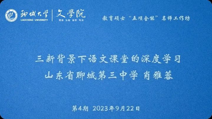 肖雅蓉:三新背景下语文课堂的深度学习——教育硕士“五项全能”名师工作坊第4期