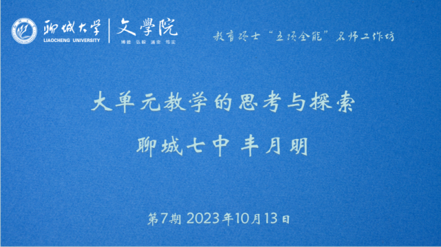 丰月明:大单元教学的思考与探索 ——教育硕士“五项全能”名师工作坊第7期