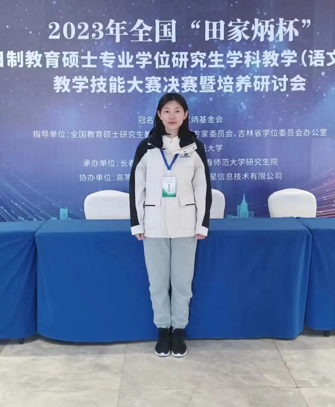 初赛评审专家评审,从全国107所参赛院校中选拔出153名选手进入决赛,我院有2名同学顺利进入决赛。由张雪飞老师担任带队老师,2022级学科教学(语文)研究生姚晓敏(指导教师张雪飞)、张国娟(指导教师戴永新)参加了10月13日-15日在长春师范大学进行的决赛,分别获得大赛的三等奖、优秀教学设计奖,取得可喜成绩。
