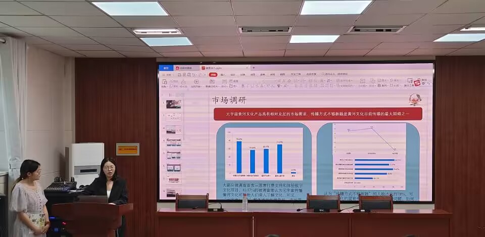 本次大赛以赛促教,拓展新思维,展现新形象,厚植大学生创新创业土壤。各团队历经数周精心备赛,呈现出各自队伍最好状态:2021级8班辛美及其团队对文化润疆进行探索,推出数字化推普系统,利用数字虚拟技术开设异步教学课堂,充分为用户带来智能化的交互式学习体验;2021级10班孙瑞阳及其团队以元宇宙赋能下黄河文化传播新模式为主要研究方向,创新性提出“元宇宙+黄河文化”的全新传播模式;2022级9班肖梦瑶及其团队针对“短视频+直播”视域下的普法教育传播策略进行研究,同时该项目也基于现实对推广前景和未来发展做出展望;2022级5班范亚茹及其团队围绕“宁养临终关怀线上新模式”展开研究,利用互联网大数据将“人文关怀”网络化、智能化、数字化,为用户提供全方位、多元化服务。