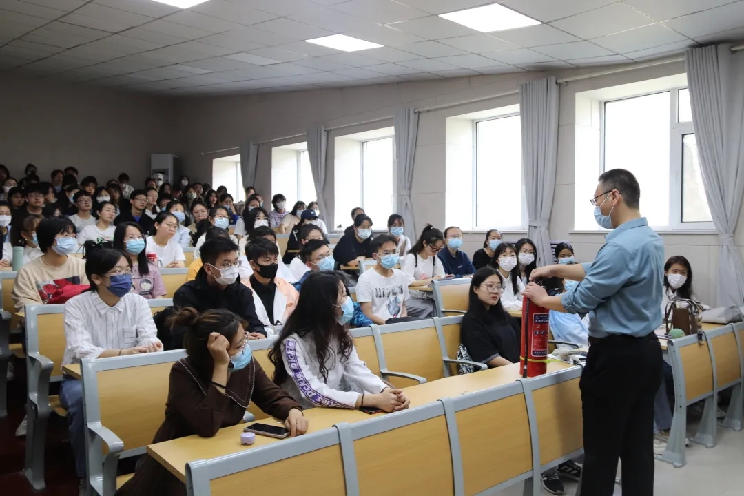 多一份消防知识,少一分安全隐患,共筑消防安全防线。各班分批次于不同时间地点展开培训,确保全体同学进一步掌握消防器材的使用方法。校保卫处培训人员详细讲解干粉灭火器的构成及正确使用方法,总结灭火器使用的四字口诀,即“提拔抓压”,提握灭火器提把保持水平状态,拔掉保险销后瞄准火焰根部,压动灭火器使其喷出干粉灭火,同学们认真听讲并记录灭火器的使用步骤。同时在现场模拟火灾发生并演示如何使用灭火器灭火,同学们专心致志地观看并上场进行仿真灭火器操作演练,培训人员在一旁作技术指导,在规范同学们使用动作的同时穿插对灭火器使用细节的讲解。同学们态度端正,虚心学习,认真听从培训人员的指导。消防安全无小事,随时随刻要留心,熟练运用灭火器是筑牢消防安全防线的基础。同学们表示在此次培训中收获颇多,不仅对灭火器的使用有更为深刻的了解,更能掌握灭火技巧,增强消防意识,落实消防安全。
