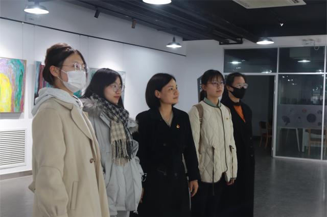“我们用一生的时间接近心中的桃花源,在不太遥远的明天,元宇宙里是否花香满谷?”本场展览以“桃花源与元宇宙”为主题,饱含艺术家张彬对生命和万物的无限思考。参观之前,支部书记相萌萌强调了参观秩序和防疫要求,并且指出,美术馆是学校独特的美育资源,它所具有的独特文化内涵,不仅能提升艺术与审美素养,更能够帮助学生们在美的氛围中感受到作品所传播的当代中国价值观念和中国文化精神,要充分体味艺术家作品中的审美追求。步入充斥着自由气息的艺术馆内,同学们在灵感的指引下接触精美的展品,于心灵的涤荡里追忆生命中的美好,在精细的针织技艺中体会世界的灵动多姿,领悟《万物一体,没有谁可以是一座孤岛》的真谛,发出《你以为是你以为的样子吗》的深刻共鸣。学生党员们不时驻足,屏气凝神,仔细揣摩,认真交流,他们近距离从展示作品中感受艺术的魅力,探索的目光中透着惊喜和兴奋,专注的神情里写满赞赏、惊讶和震撼,纷纷表示在极富感染力的作品中接受了一次文化洗礼和艺术熏陶。