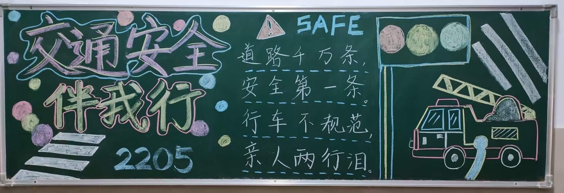 平安校园在我心,安全行动手中行。本次安全教育系列活动包括三部分。首先,学习发展部组织同学们利用课余时间,合理分工,精妙构思,最终绘制出一幅幅颜色缤纷、图文并茂的黑板报作品。2022级5班的板报重点突出,表意明确,以“交通安全伴我行”七个大字为主体,用斑马线、红绿灯等元素表现遵守交规,安全骑行的主旨。2022级4班的板报作品图文并茂,众彩纷呈,围绕疫情防控这一中心,绘制生动形象的迷你病毒和医护人员形象,为同学们重点科普防疫相关知识并介绍日常防疫措施。2022级3班同学的板报标新立异,特色鲜明,通过一只引人注目的企图抓取纸币的手,以及四个占据画面中央的红色大字“预防诈骗”突出防范电信网络诈骗内容,从而达到安全教育目的。此外,学习发展部成员们在教学楼停车区域悬挂横幅,并提醒学生佩戴头盔,减速慢行。同时开展网络宣传活动,成员们在易班软件上发布采用动画形式的安全教育视频,使宣传内容更具可读性和观赏性,对学生进行交通安全、防疫要求和预防校园贷陷阱等方面知识科普。在接受系列活动的教育时,学生们颇有感悟,并分班上交了针对安全教育的体会心得。