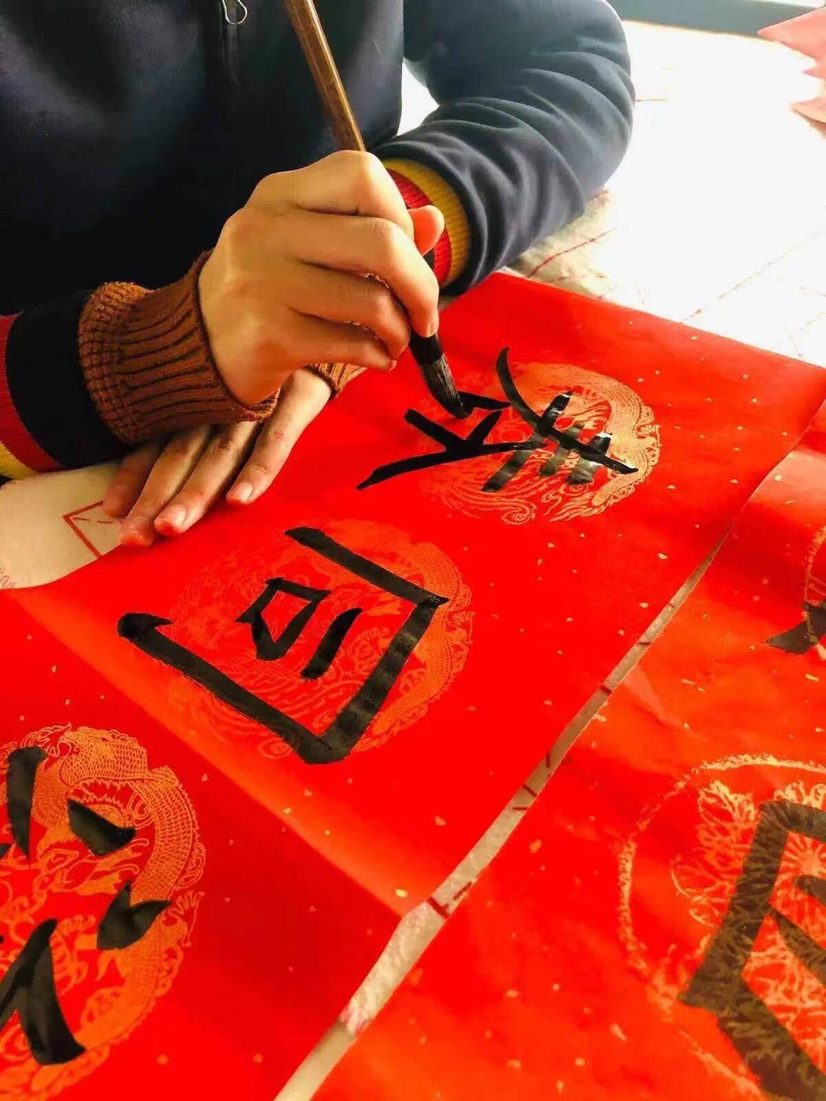 春节已至,旧岁将辞。福字有着深厚的文化底蕴,它表示着福气、吉祥、幸运、健康、平安、富足等美好祝愿。志愿者和小朋友们一起写福字,一起一落,寓意着吉祥安康的“福”字跃然纸上。