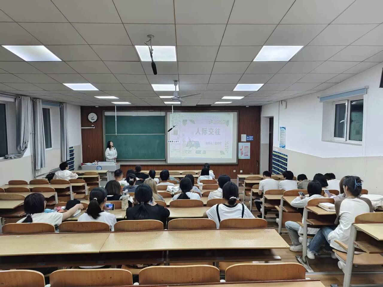 本次阳光心理大讲堂主题为人际关系的处理,主讲人吕欢欢播放有关人际关系的视频并分享一系列经典心理实验,生动形象展现人际交往中的常见障碍与解决策略,引导学生思考生活中可能遇到的问题,进一步强调维护人际关系的重要性。为帮助学生进一步了解主题内涵,吕欢欢设计多个互动环节,邀请同学们上台介绍自己,并分享他们对于人际交往的看法。张雨涵积极发言,介绍自己的性格特点,并希望为构建和谐校园贡献力量。“你画我猜”小游戏考验学生之间的默契度,同学们在欢声笑语中体验团队合作的乐趣,加深彼此间的友谊。活动尾声,吕欢欢对本次活动进行总结,希望此次心理大讲堂的学习和交流帮助同学们掌握更多的人际交往技巧和方法。