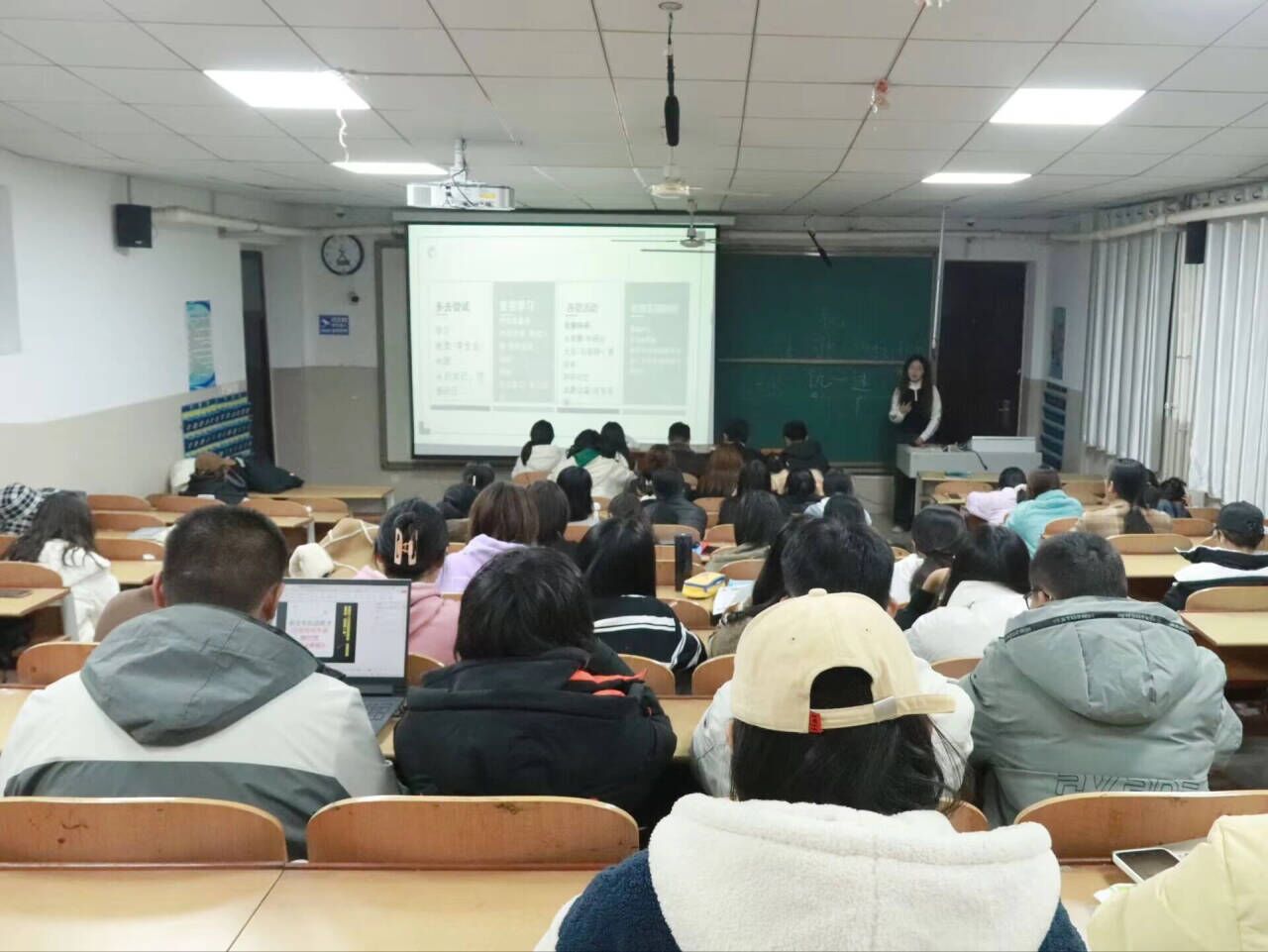 韩璐从培养专业兴趣,挖掘学习资源、制定学习计划、夯实专业壁垒、重视综合素质五方面分享自己的学习经验。她强调,同学们在大学学习生活中应充分发挥主观能动性,主动挖掘各种潜在的学习资源,并积极参与社区与学校组织的社会志愿活动,注重发展综合素质,实现自我提升。