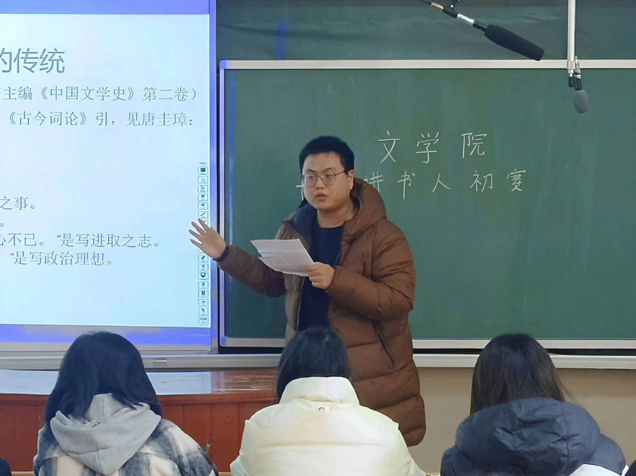 日月之行,若出其中,星汉灿烂,若出其里。陈功名以“大海与胸襟”为切入点,以生动的语言讲述他心中的《观沧海》,分享这首诗带给自己的精神力量,鼓励同学们应拥有博大胸怀,同时要以积极的态度投入到阅读经典作品之中,与经典对话、与智者交流,提升自我、拓宽视野。吴伊蕊带领大家一道穿越历史,走进《繁花》,将“繁花似锦、灯红酒绿的时代”娓娓道来,诉说着二十世纪九十年代上海的辉煌灿烂,随后,她将此书与《红楼梦》进行对比,“如果说红楼一梦是没落,那繁花不响则是觉醒”,讲述她对此书的独特理解,激励同学“上帝不响,像一切全由我定”。对于《一句顶一万句》,汤梦婷和李文竹有着不同的理解:汤梦婷围绕“找”“绕”“事情”“情理”等词展开描述———在书中为了安置孤独,一句话要找另一句话来替代,绕来绕去,非心所愿,她提醒同学们在日常生活中要谨言慎行,说好每一句话;而李文竹则围绕“缘”“命”“孤”展开讲解,她重在寻求知己,以知己之一言顶他人之万语。与其他选手不同,周晓飞敢于突破常规,开头提出何为“讲书”,引发观众思考,随后,他以“路在脚下”为主题,从爱国的角度出发解读《牧羊少年奇幻之旅》,结合自身经验呼吁大家“以梦为马,敢拼敢打”“活在当今,抛弃功利”,引导同学们思考学习的意义。张秦璐琪分享的是路遥的《平凡的世界》,该作品多描写小人物,从一系列平凡情节中展现苦难与幸福、平凡与伟大,在现实和理想的交织中展现人性的真善美,启示同学们要像孙少平一样对生活从不低头,在命运道路上走出一条让人为之叹服的阳关大道。