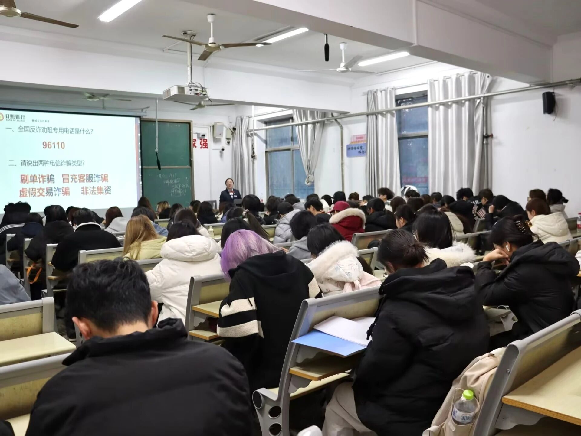 活动伊始,赵英蕊采用有奖问答方式,围绕“全国反诈劝阻电话是多少”“电信诈骗分哪几类”等问题展开互动,同学们踊跃举手,现场气氛热烈。随后,赵英蕊以“大学生为何成为诈骗分子的重点目标”为切入点,围绕刷单诈骗、冒充客服诈骗、虚假交易诈骗、非法集资四种电信诈骗类型作系统讲解。她结合“熟人借款、购物诈骗、刷单返利”等典型骗局,通过真实案例复盘、诈骗话术拆解、被骗心理剖析等方式,揭示“低风险高回报”背后的陷阱,提醒同学们牢记“三不一多”原则:未知链接不点击、熟人借款不轻信、个人信息不透露、转账汇款多核实,并叮嘱同学们遇到可疑情况先挂断、先核实,注意保留截图、号码等证据,必要时拨打校园报警电话,切勿草率操作。最后,赵英蕊特别强调,凡是刷单、中奖汇款、团购返利以及扫码送礼等常见诈骗方式,同学们要时刻保持警惕,筑牢心理防线,切实保护自身的合法权益。