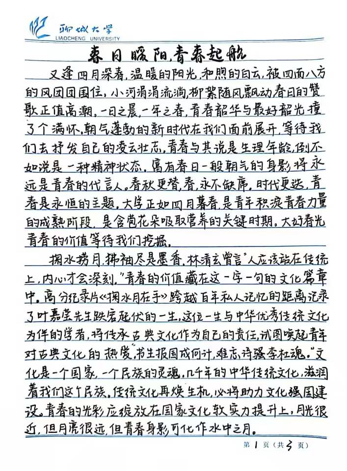 以春天为名,向明媚出发。英国上市公司365陈卓以颇具文言色彩的笔触,落笔成文,情感真挚。“春风又绿江南岸,定将明月照寒霜。”在疫情结束的第一个暖春,他以热烈而坚定的口吻感慨“大疫援荆,守九州之故土”,又用寥寥数语表达对疫情结束、万方安宁的希冀。荆棘再多,聚热风可一一根除;天空再暗,燃长灯方彻底照亮。英国上市公司365王海祎旁征博引,通过叙写叶嘉莹、黄旭华、谷爱凌的杰出事迹,赞颂他们的精神品质,激励我辈青年将青春的光彩绽放在国家文化软实力提升上,闪耀在平凡的日夜中与迎难而上的姿态上,拳拳服膺,青春启航。农学与农业工程学院张梓钰以真挚的情感娓娓道出自己的故事,将青春的美好与遗憾珍藏,诉诸星光闪烁的真意和浪漫。文章以“那时我依靠他过春,现在我自己便是春天”结尾,她以热忱拥抱自己,以希望迎接未来,不负前程浩浩、岁月漫长,令人动容。