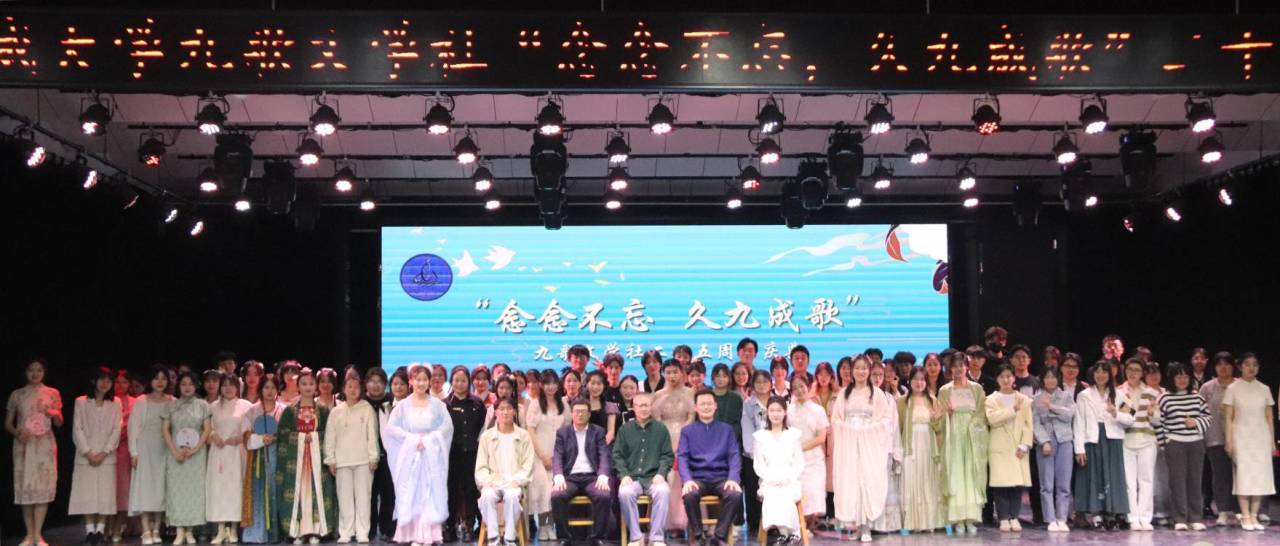 春启今朝,棹梦九歌;繁花如织,灯火如梦。晚会以《my bag+tomboy》作为开场舞,星星点点拥簇舞台,杨雨、耿梓菲等表演者激情四溢,将Kpop发挥得自由性感,点燃全场热情,彰显青春力量。人生海海,山山而川,相逢的意义在于彼此照亮,“在所有流失风景与人群中,你对我最好”,歌曲《好好》甜蜜而具有故事感,梁淑婷、郭成武情意绵绵,背后荧屏的故事饱含爱情的甜蜜和对未来的向往。5566剧团的王晓靓、魏鹂慧分立左右,一捧一逗,语言诙谐幽默,表演流畅自然,为大家带来了一场精彩绝伦的语言艺术盛宴。王韵涵、何磊等带来的歌曲串烧《如果有来生》、《陪我歌唱》、《遇见》舞台布景温馨,将风花雪月融入歌曲,悠扬洒脱,“声”入人心,充满清新美好的青春气息。罗衣何飘飘,青裾随风还,大运河国学社携手先锋秘书协会带来古风走秀《云墨霓裳》。珠翠摇曳,罗裙散开,一颦一笑尽显少女娇俏;长剑挥洒,推肘偏击,一招一式更突出侠客豪迈,精彩的走秀将中华服饰之美展现得淋漓尽致,再现了古人的情态风度。“我的九歌,我的知遇”,刘明睿、李泽倩带来的《诗化云游》饱含对小九的殷殷期盼,诗中旅者途径“荒岭戈壁”、“江南湖堤”,百般景象织成绘有万千风景的画卷;伴随音乐韵律,一声声深情的“小九”拨动每个九歌社员的心弦。“放手如果是一门功课,妈妈一生没考过”,刁俊杰、宫玉倩带来的歌曲《是妈妈是女儿》聚焦母女之间的未曾言明的牵挂和爱意,用深情对唱的形式倾诉真情实感,可谓庆典节目中的“催泪天花板”,两位表演者唱腔优美、台风稳健,使无数观众泪目,将现场氛围推向高潮。空灵宏大的舞台、斑斓流彩的灯光,张钧凯、张智睿等带来的话剧《湘夫人》让传统文化闪耀,上演了一幕幕磅礴大气、壮怀激烈的感人情景,剧中大量楚辞诗文的念白与吟唱使全剧洋溢着楚文化的瑰丽风情,也让观众领悟屈原作品的独特魅力。“蒹葭苍苍,白露为霜”,刘文瑄、律志鹏等带来的吟诵《诗词画卷》以原汁原味的唱腔带领观众穿越历史风尘,用旋律追寻古人章句中的灼灼真意,几曲道尽流传千年的离别愁绪,展现中国气派、中华瑰宝。“起舞伊人,长裙摇曳”,项文乙的《山鬼》以一曲霓裳舞尽芳华,幻想与现实交织,演绎世间爱情仇怨,婀娜曼妙的动人舞姿引得观众进入千年前的缥缈境界,体味瑰丽离奇的爱情故事。“一届又一届九歌人,一代又一代九歌魂”,路琦、王智阳等带来的朗诵《花信颂久典 相逢成歌韵》颂尽九歌人延续的情脉,表达对九歌的称颂与祝福。“愿所念所愿,皆可如愿”,王宝文的歌曲《如愿》作为压轴曲目表达了对九歌文学社的期盼与祝愿,道尽了社员之间的情感与羁绊,表演者深沉的歌声与精彩的演绎为二十五周年庆典画上了完美的句号。