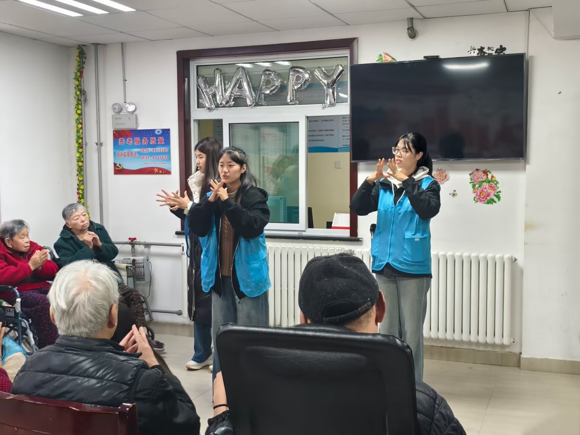 活动前期,志愿者们积极与养老院负责人沟通联系,详细明确服务要求,并制定完善活动方案。活动过程中,志愿者们分工有序,通过演唱歌曲、朗诵诗歌及做手指操等活动,加深了与老人们的情感交流,丰富了他们的精神生活。