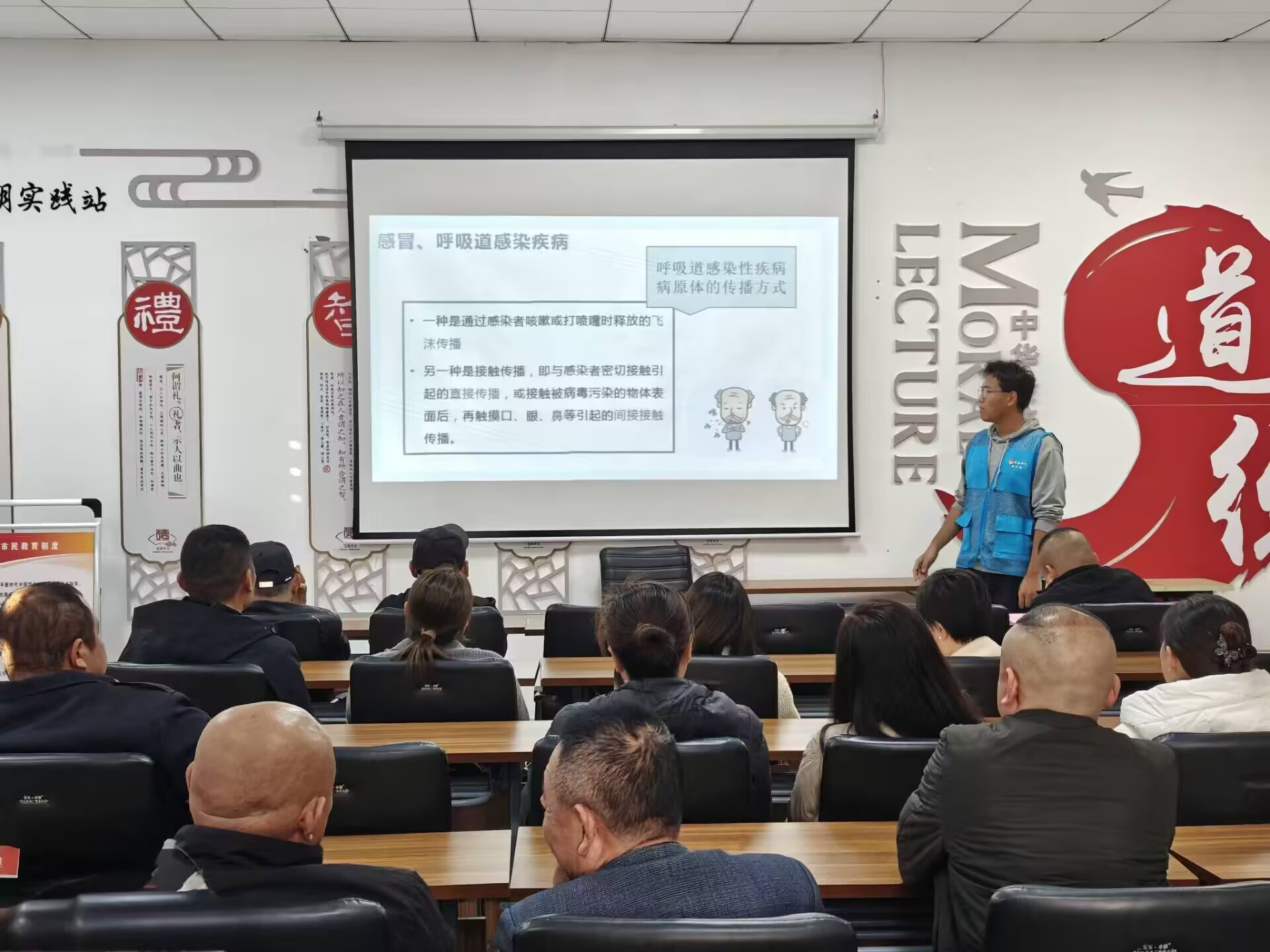 志愿者们来到柳园社区,围绕健康饮食、适当运动两方面展开秋冬健康知识讲解,针对老人常见的生活问题,科普养生保健知识、科学饮食搭配及运动锻炼技巧,提升老年人的自我保健意识和能力。志愿者们详细介绍生活常见疾病,播放相关视频演示疾病原理,结合生活实际并配合肢体动作具体说明疾病预防方法,推动老人深入了解常见疾病、保持健康生活习惯。在答疑互动环节,志愿者们关心老人日常生活及身体健康状况,同时细心倾听老年人的需求与心声,与老人亲切攀谈,拉近彼此距离,老人们也积极参与讨论并回答问题,现场气氛热烈。