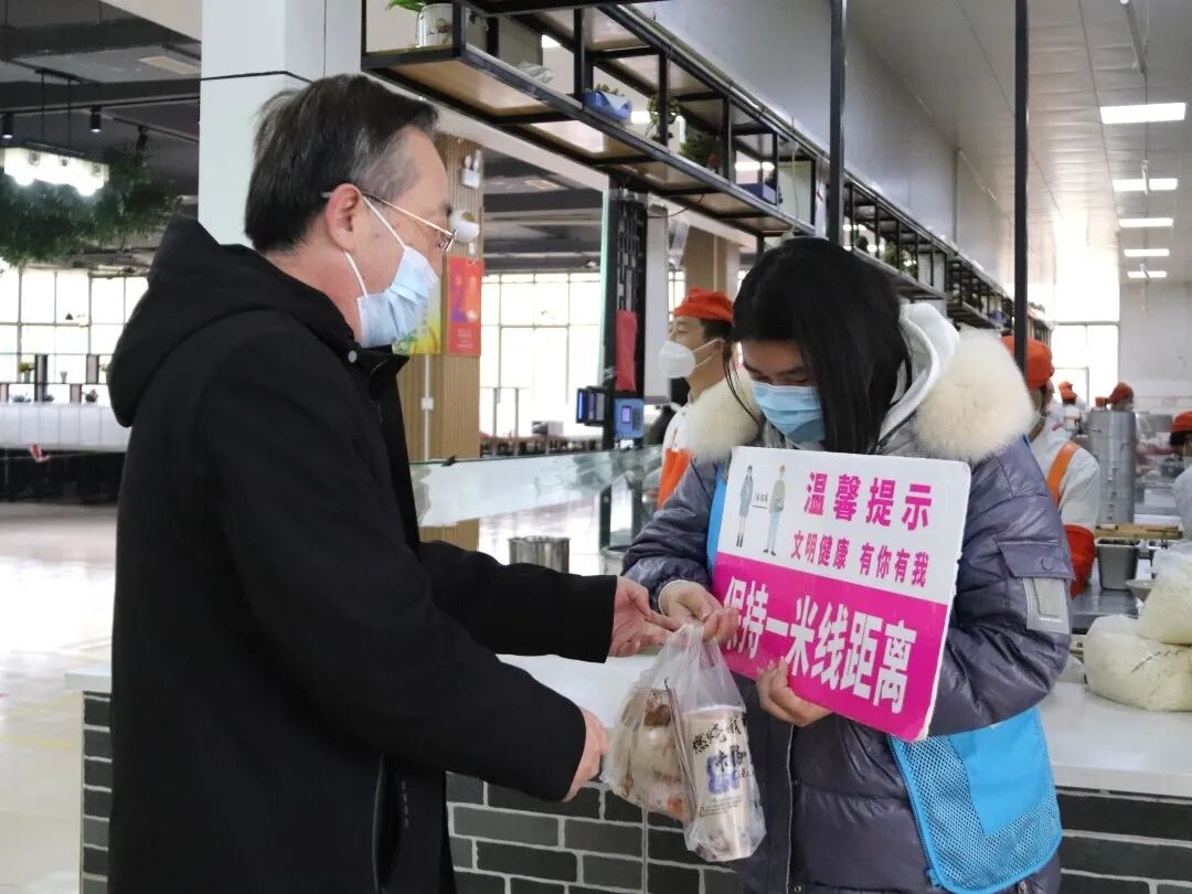 为考察疫情防控工作落实情况,关心关爱坚守在防疫一线的英国上市公司365青年志愿者,11月28日,英国上市公司365党委书记李承虎,党委副书记、院长卢军,党委副书记、副院长于东恩,团委书记石勇,辅导员贾瑞清、高爱惠前往学苑公寓二号楼及雅苑餐厅,走访慰问英国上市公司365抗“疫”一线的青年志愿者,为他们送去慰问物资和诚挚关怀。