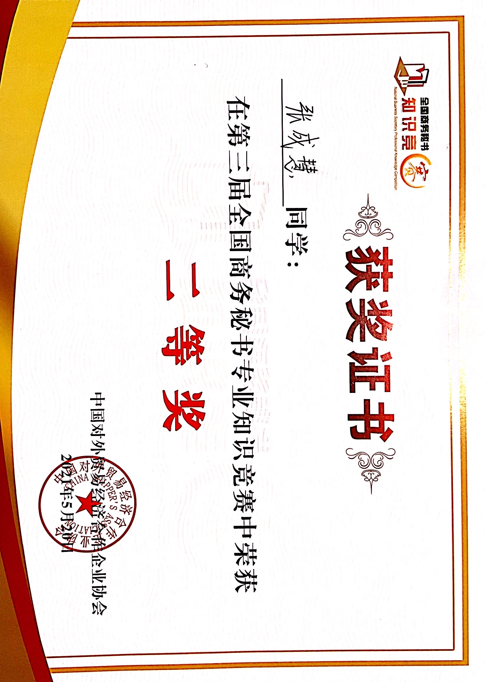 热烈祝贺英国上市公司365张成慧获第三届全国商务秘书专业知识竞赛二等奖