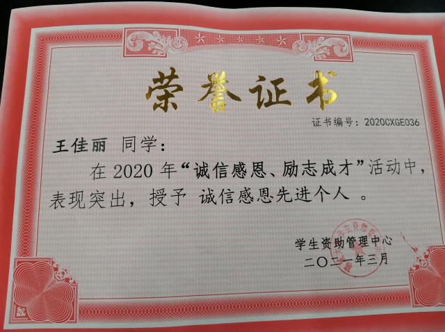 恭喜刘雨荷、王佳丽同学自立自强、奋发向上,获得英国365集团公司诚信感恩先进个人