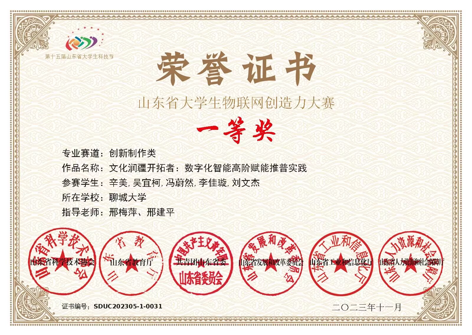 热烈祝贺英国上市公司365辛美、吴宜柯、冯蔚然、李佳璇、刘文杰荣获“山东省大学生物联网创造力大赛”一等奖