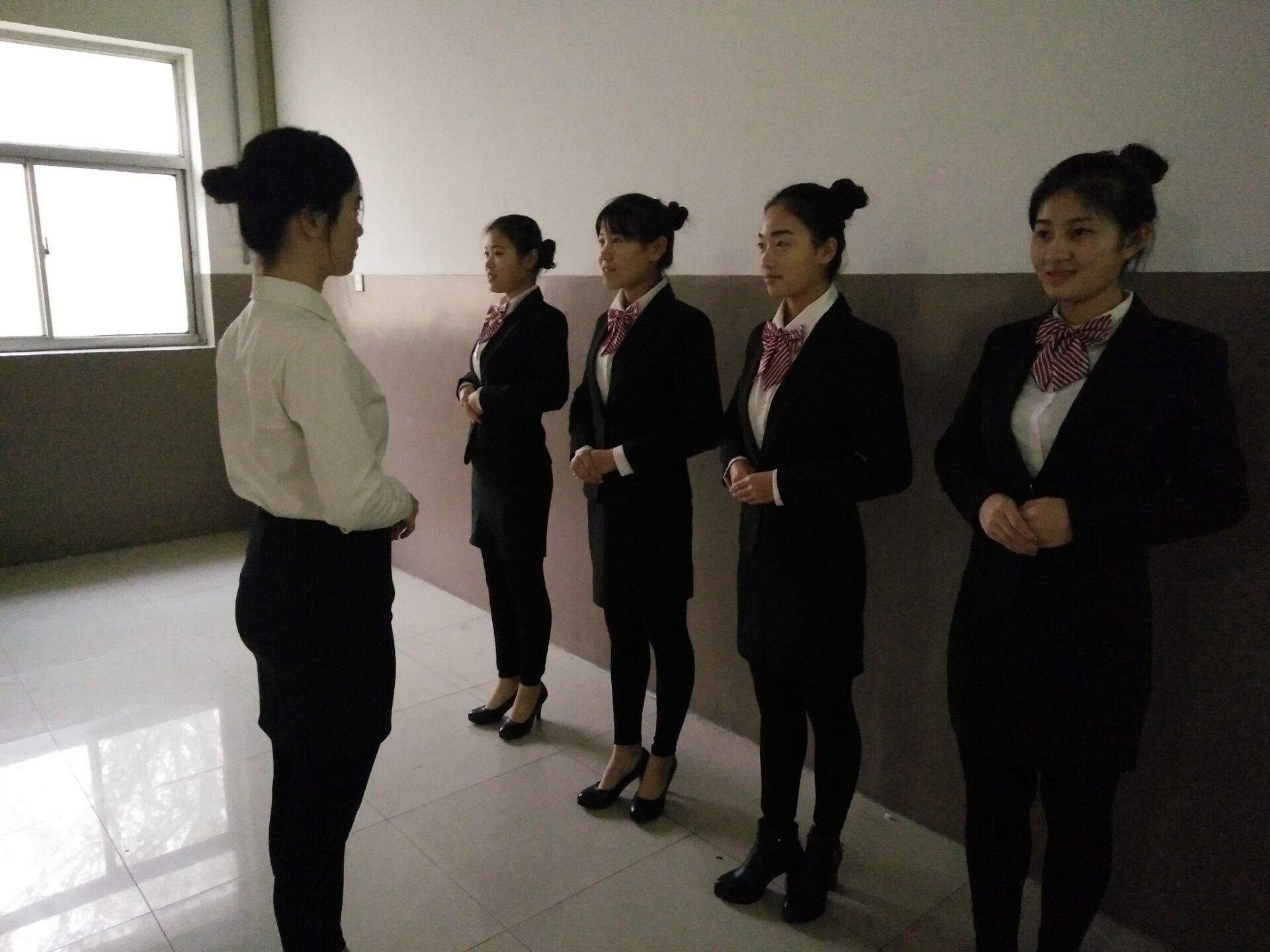 活动伊始。培训人员简要介绍了本次培训的主要内容和活动流程,并细致讲述了相关礼仪的基础知识和注意事项。随后,培训人对站姿、坐姿和迎宾三种礼仪的标准动作的演示,并对复杂动作进行了分解练习。同学相互指导,交流动作诀窍,严格要求自己的动作、表情。在负责人的耐心指导下,同学们熟练掌握了这几种基本礼仪,并进行了精彩的团队演示,整齐划一、标准规范的动作让人赞叹不已。