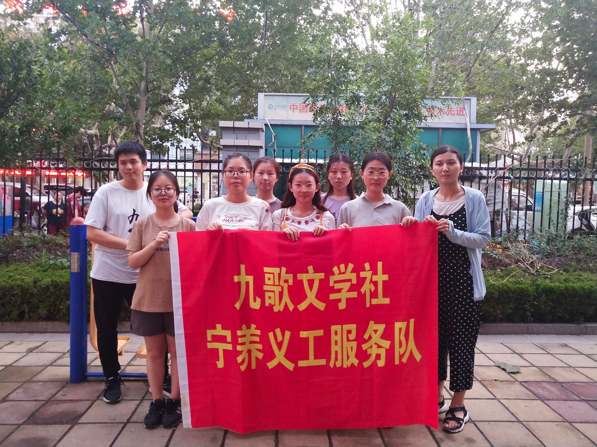 在与宁养院相关负责人的联系下,服务队在宁养院附近开展了文艺演出活动。在兖健宇的主持下,文艺表演活动拉开了序幕。宋蕊同学带来的诗朗诵《时间都去哪儿了》让大家回首了不快不慢的时光,谁也无法阻止时光的流逝,哪怕生命只剩余光,也要生生不息。诗词很应景,路人认真的驻足聆听是最好的诠释。刘恒的歌曲串烧似乎唱出了对生活的向往,不论是《山居秋暝》还是《追梦赤子心》,诗词与现代音乐的完美结合让听众在一韵一律中感受到生命的顽强。江南烟雨楼阁中,撑着油纸伞的姑娘缓缓走来,邸诗淇朗诵的《雨巷》让人感受到了她纯真热烈的愿望以及她对这个世界最本真的热爱。文艺演出的最后,服务队成员合体朗诵《以梦为马》,打破了对梦想的定义,或许,此刻认认真真活下去就是很多人的梦想。天色渐晚,文艺演出活动在大家热烈的掌声中落下了帷幕。