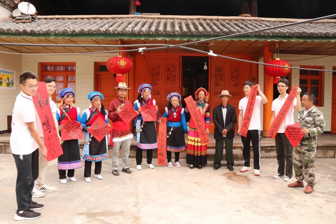 在开设课堂过程中,我们了解到村民和才俊之子近日喜事临近。身为汉语言文学专业的学生,队员们发挥专业所长,亲手书写“雙囍”、喜联和中堂等婚礼用品。队员们带着喜联和采购的生活用品走近和才俊家,并认真地向他们介绍中堂所蕴含的美好寓意,借韵律动人的喜联表达对两位新人真诚的祝福。其父更热情地拉起队员的手,在自家的炕头上与队员们倾心交谈,向队员们详细具体地介绍当地的婚礼习俗:订亲、测算八字、过大礼、迎娶和坐家等礼俗。