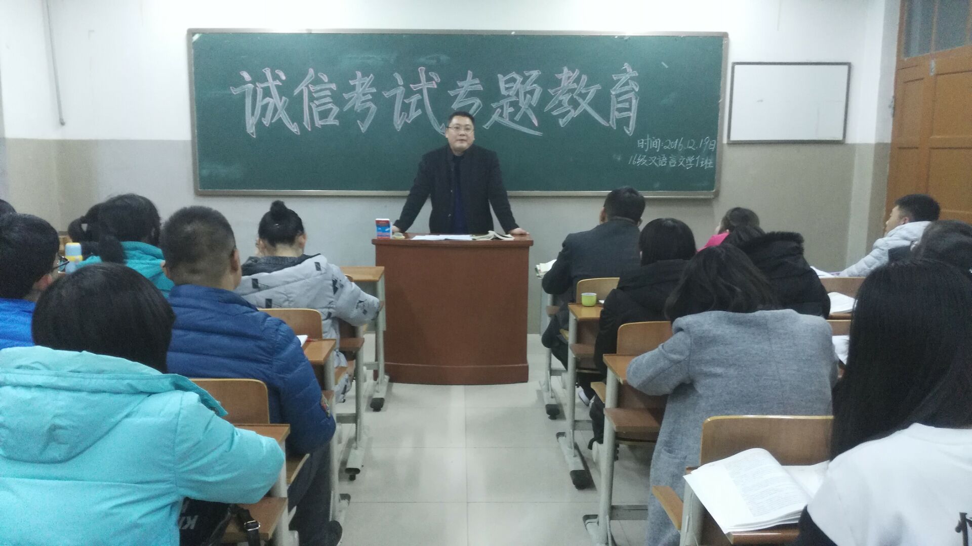 12月19日,英国上市公司36516级汉语言1班在西校区3#A303召开诚信考试专题教育班会。英国上市公司365党总支书记辛业到场主持班会。