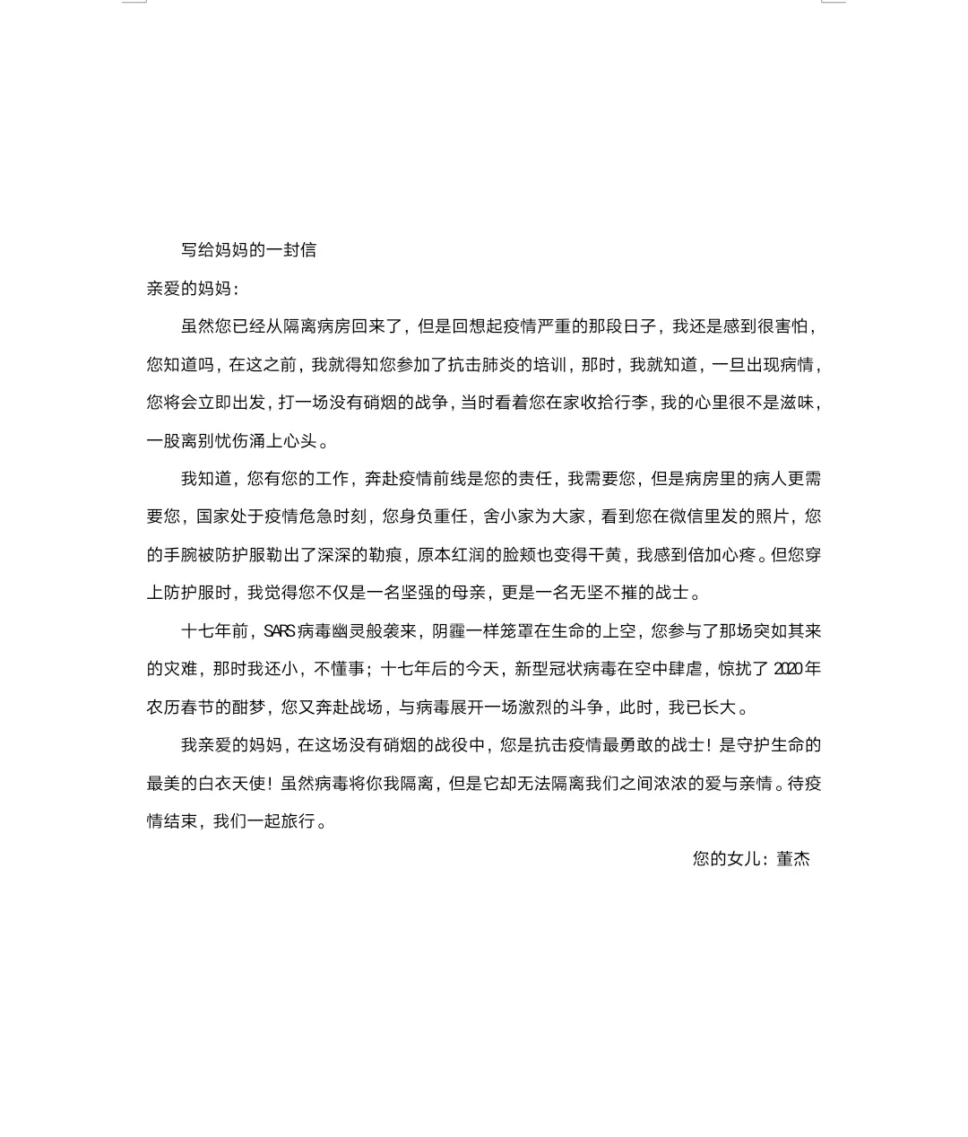 镜头将英雄们珍贵的瞬间记录下来,本次活动便由同学们讲述照片背后的故事,并用笔书写下自己的感触。英雄是无私奉献,2019级6班刘晶晶为大家讲述排雷英雄杜富国和白衣天使胡佩在各自岗位上舍己为人的光荣事迹,简单的文字背后饱含着无法细数的血泪;英雄是敢为人先,疫情期间,有一群人自发性地参与武汉救援,2018级2班刘意萌与2018级6班杨延鑫为我们介绍的便是这群人所组成的民间援鄂医疗队,和平时期,他们在岗位上默默付出,各自发光;危难时刻,他们心有灵犀,自发凝聚成为最炽热的一团火焰;英雄看似离我们很远,但却真实生活在我们身边,2019级3班董杰的母亲就是一位战斗在抗疫一线的英雄,她的家人同样对她日夜忧虑,但她还是选择冲锋陷阵,毅然决定面对危难,身居家中她是一位和蔼温柔的妈妈,但在抗疫一线,她就是一位在死神手中抢救生命的伟大英雄。