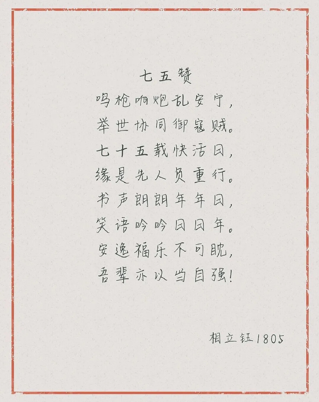 岁月沧桑人虽去,名铸人间草木香。此次活动,同学们以宿舍为单位采用丰富多彩的创作形式向时代英雄表达崇高的敬意。一个个精心制作的千纸鹤代表着同学们对抗击疫情的英雄们以及为国家富强和民族复兴而抛头颅洒热血的仁人志士们美好的祝愿。姜頔、相立钰、贾梦丽等同学以笔底生花、气魄豪宕的原创诗文赞颂和平、祭奠英烈,纪念反法西斯胜利75周年,同时也表达出吾辈当自强的雄心壮志。“不以聊赖纵其心,须知居家是安康”,冯新颖、刘慧琳等同学的疫情防控标语,时刻提醒着人们做好疫情防护。除此之外,同学们以认真积极的态度对待此次知识竞赛,在规定时间内高效完成试题,并观看电影《我和我的祖国》,加深红色记忆,牢记革命历史,时刻铭记烈士们和奋战在疫情第一线的白衣天使们为国家和民族而不惜献出生命的大无畏英勇事迹。
