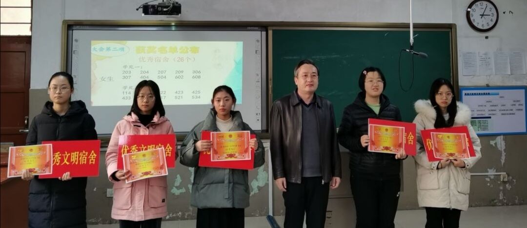 本次表彰大会围绕宿舍和教室卫生要求展开,主持人陈荟如强调,文明和谐的宿舍和干净整洁的教室环境可以提升学生的思想文化修养。大会第一项,陈荟如公布优秀文明宿舍和优秀班级获奖名单。于东恩、胡明洋、贾瑞清对获奖宿舍和班级颁发奖状与生活用品。大会第二项,主持人公布优秀个人名单,优秀先进个人代表王延宁发言,他向大家分享宿舍的日常生活,表示宿舍是像家一样温暖的存在;先进个人代表刘佳琪提出,舍友之间应该共同努力,互相温暖,努力营造良好的宿舍氛围。大会第三项,于东恩发表讲话,强调宿舍环境的重要性,良好的宿舍环境能够促进同学们的学习发展,希望宿舍内部互相动员,统一思想,积极考研,争取全员参与到考研中来,从大一就开始树立明确的目标和方向,坚定考研决心,争取出现考研大满贯宿舍;舍长应协调好宿舍内部关系,促进宿舍人际关系的和谐发展;五差宿舍应向十佳宿舍学习,改进宿舍现存的问题,争做优秀文明宿舍。
