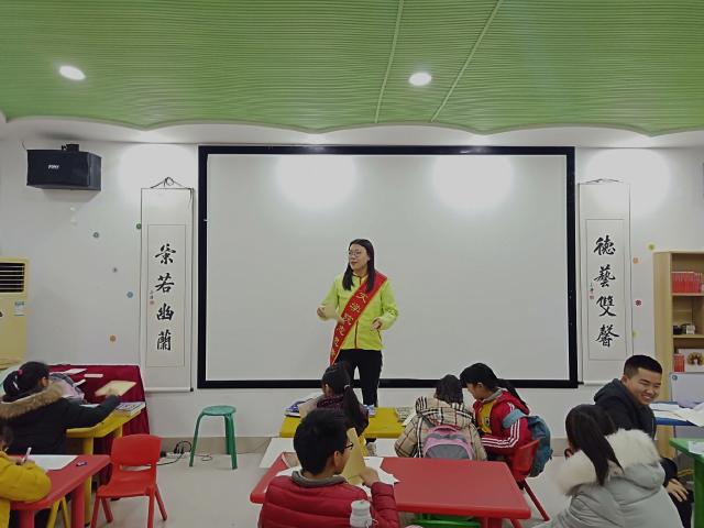 当学习部成员来到利民社区的“四点半课堂”时,教室里的孩子们都开心地鼓掌欢迎“小老师们”的到来。为了拉进与孩子们之间的距离,成员们与孩子们做起了小游戏,现场一派其乐融融的氛围。短暂的游戏时间结束后,成员们把整理好的国学读本分发给每一个孩子。为了让孩子们能够更为容易地理解读本的内容,学习部的每一位成员都提前用心搜集好了小学生易于接受的国学篇目,并把它们装订成册。分发完读本后,讲学正式开始了。成员们分散地坐在孩子们的书桌旁为他们讲起了一个个妙趣横生的国学小故事。每一个孩子都聚精会神地听着成员们讲解。成员们还针对性地和孩子们聊起了学习的重要性,并对孩子们的学习上的问题进行了耐心的解答。最后,成员们为小朋友们分发了糖果。活动至此圆满结束。