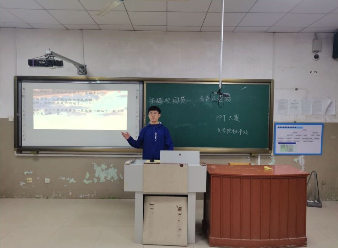 主持人马丽君介绍活动背景及理念,随后同学们依次上台展示原创PPT并作讲解。王晨将短视频与PPT内容相融合,生动直观地向观众展示校园贷的危害;张萍从校园贷含义、危害及防护措施等方面展开介绍,以多个校园贷危害大学生的真实案例警醒同学们远离校园贷款;李瑞别出心裁,通过风格独特且色彩鲜明的PPT、妙趣横生的讲解、意蕴丰富的展示内容,将校园贷的危害逐条道来;沈新月于PPT中插入搞怪表情包,用激昂的声音和幽默的内容引导大家抵制校园贷。现场气氛活跃,评委们认真负责,于后期仔细核对和统计打分并公布获奖名单。活动期间,2019级、2020级各班班长及学习委员作为负责人到场学习。活动结束后,负责人挑选优秀PPT作品,于晚自习期间在各班级内部宣传讲解防范校园贷相关知识。各班同学认真听讲,纷纷表明远离校园贷与理智绿色消费的决心。