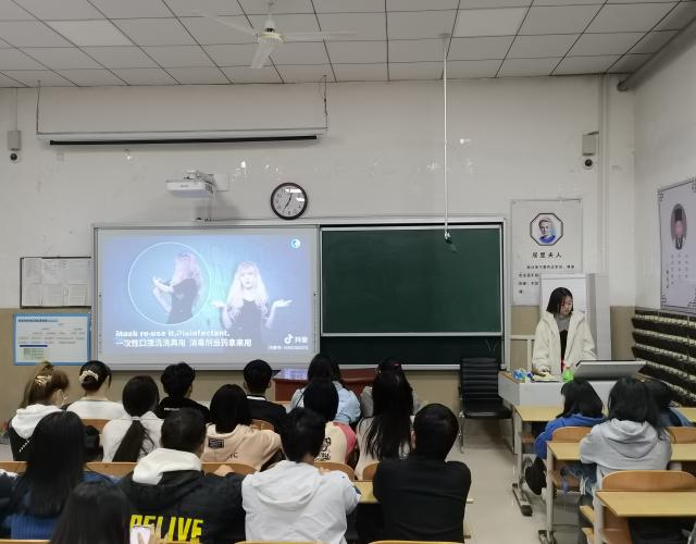 携手抗疫,共克时艰。活动采用线上直播和线下宣讲两种方式举行。首先,孙琪播放近期网络上的热点视频“国社小姐姐改词翻唱《后妈茶话会》”,歌词花式吐槽美国“病毒奇迹消失论”、“反复使用一次项口罩”的荒唐,通过对比两年来中美抗疫差距和不同态度,表现出中国人民在面对困难时众志成城、同舟共济的精神品质。防疫在身边,行动你我他。孙琪为同学们介绍英国上市公司365硬核防疫制度即“少出校,不聚集,勤通风,防封闭”,并指出班级卫生委员要负起责任,引导同学自觉遵守校园防疫措施及规章制度。同时,她强调,在个人层面要做好防护、注意卫生,加强体育锻炼,提高自身免疫力。活动结束后,一位同学表示,山川异域,风月同天,疫情防控不仅是中国的大考,更是世界面临的共同大考;抗击疫情,刻不容缓,我们要用信念筑起抗疫防线,用自己的实际行动筑起防疫工作的坚固长城。