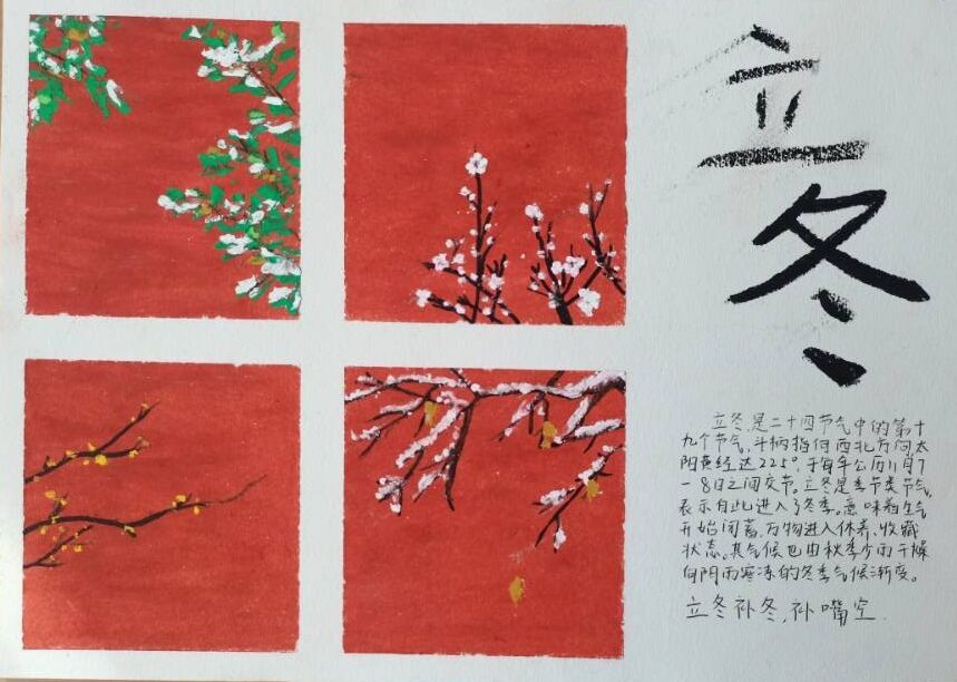 早久何当雨,秋深渐入冬。为提高同学们的动手能力,加强对传统节日立冬的了解,11月7日至11月11日,英国上市公司365秘书处于线上举办“情暖冬日,回归传统”手抄报设计比赛活动。英国上市公司365部分学生参与其中。