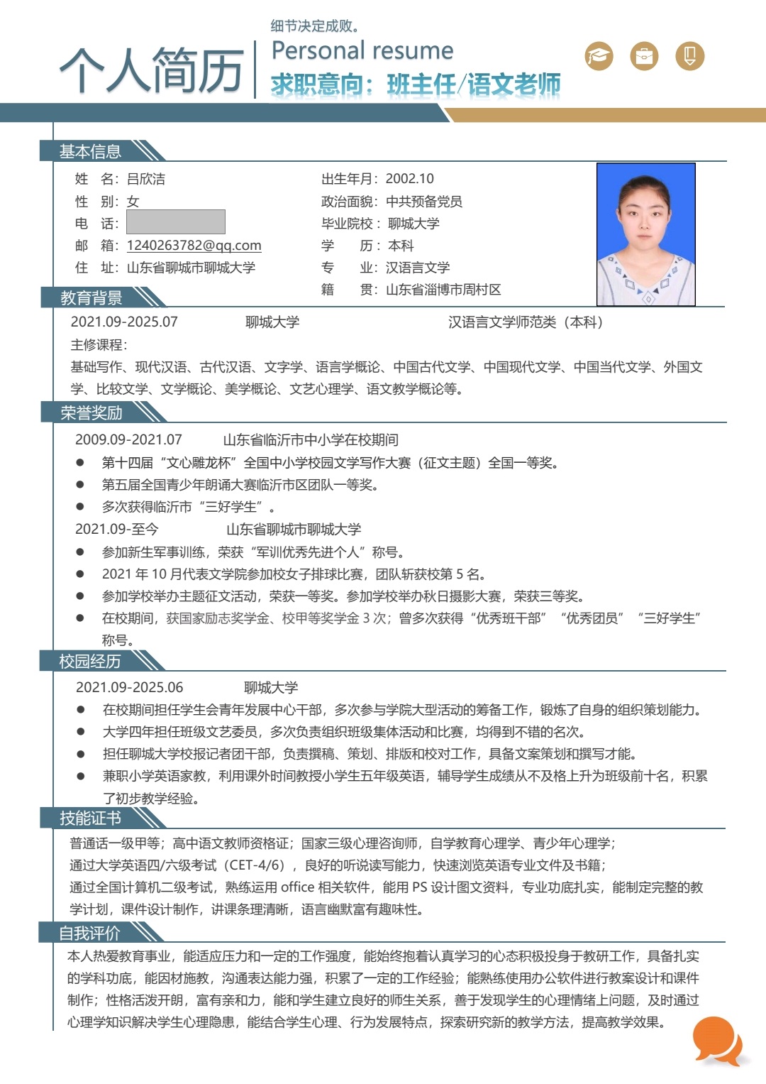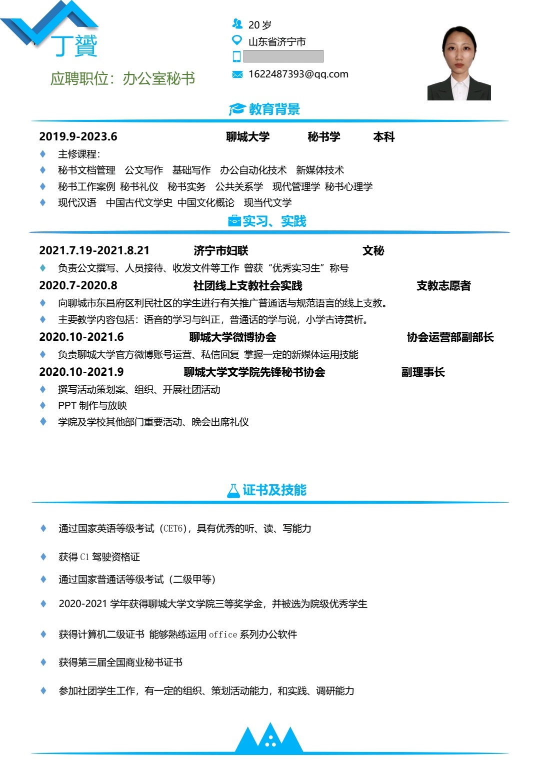 我辈岂是蓬蒿人,不负青春不负卿。同学们通过模拟求职的形式,为日后走出校园、迈入职场积累经验。参赛同学根据自身实际情况,制作个人简历,适当虚拟求职信息并准备自我介绍。2019级秘书学专业丁贇,求职意向为办公室秘书。已有文秘实习工作经历的她,从容淡定地介绍了自己的学生工作、实习经历,她通过个人简历体现出自己的专业优势及自己对所应聘岗位的了解,获得了评委的赞赏。2020级汉语言文学专业吕爱蕾、2021级汉语言文学专业高文璨、吕欣洁,她们的意向岗位都是语文老师,她们在打磨教学技能的同时积累面试经验,并将尊重学生、重视能力培养、富于责任与担当的意识根植于心。2021级汉语言文学专业刘璇,求职意向为文创产品宣传总监。她凭借丰富的教育经历和交流宣传经验、轻松自然的自我介绍与条理清晰的表达,表现出一定的专业和职业态度。评委老师对选手的表现给予充分肯定与赞扬,并分享自己的职场经验,选手们获益匪浅。