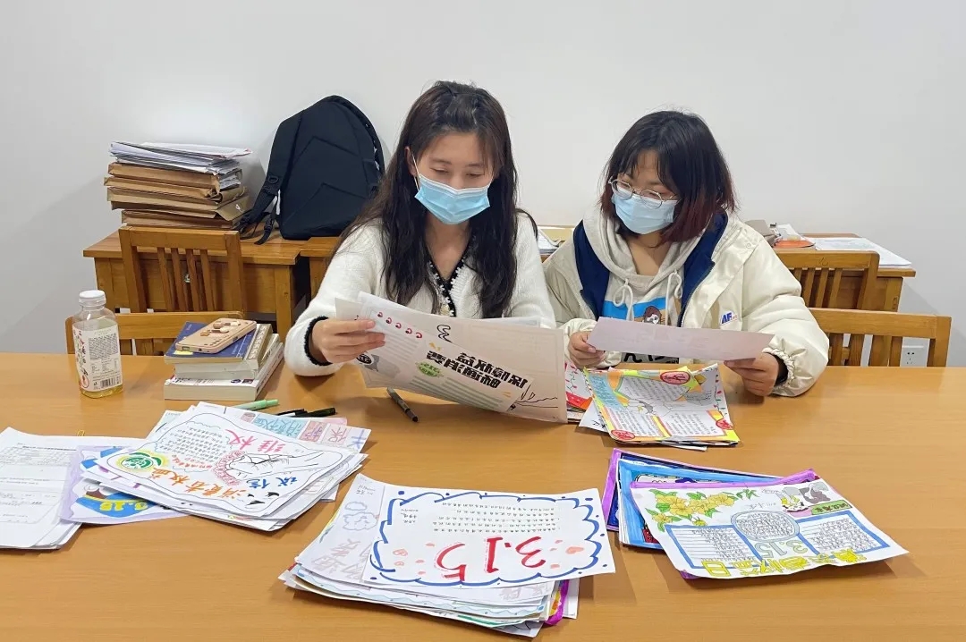 唤醒维权意识,保护合法权益。参赛人员以绘制消费权益主题手抄报传递维权思想,以字传情,以画传感。2020级5班霍雨晴构思巧妙,通过漫画夸张地表现出“3•15”国际消费者权益日的打假力度,充分体现出对维护合法权益的深刻理解;2021级3班孙浩然以“3•15 消费者权益日”为手抄报创作主题,通过对消费者权益日主题、消费者权益含义、基本权益内容三方面的说明,呼吁学生应提高对消费维权的关注度,树立诚信意识,培养健康绿色的消费理念。经过评审,共选出18张优秀作品,并对获奖学生进行通报表扬,以此引导更多同学关注权益保护。