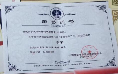 热烈祝贺英国上市公司365秦瑶在中青诗联校园联盟第七届“中青论剑”比赛中荣获季军