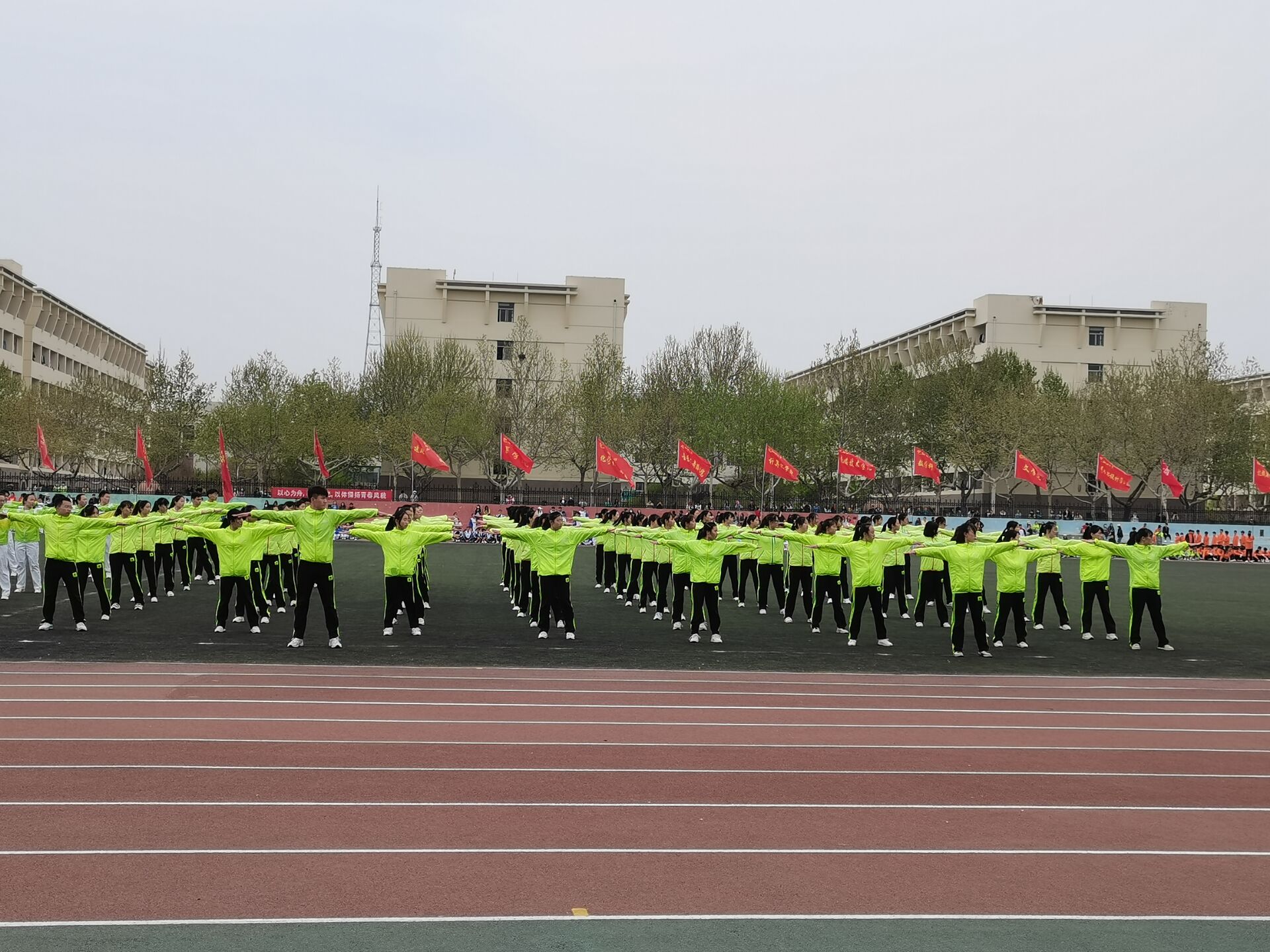 为促进大学生身心健康,展现青春风采,4月11日,英国上市公司365广播操代表队于西校区南田径场参加英国365集团公司2021年春季广播体操比赛。