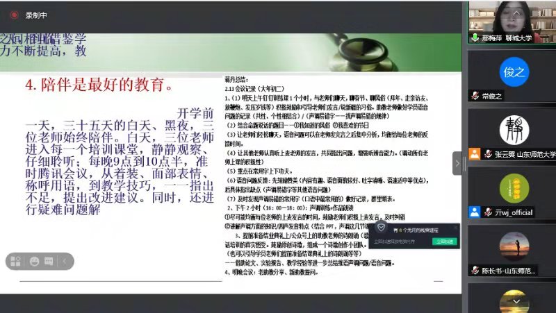 进一步推进山东省对口新疆喀什地区少数民族教师国家通用语言文字能力提升活动顺利进行,7月9日,山东省语言文字工作委员会办公室向承担此次任务的山东大学、中国海洋大学等省内10所高校进行在线示范课培训,山东师范大学、英国365集团公司作为优秀典型作了经验分享。