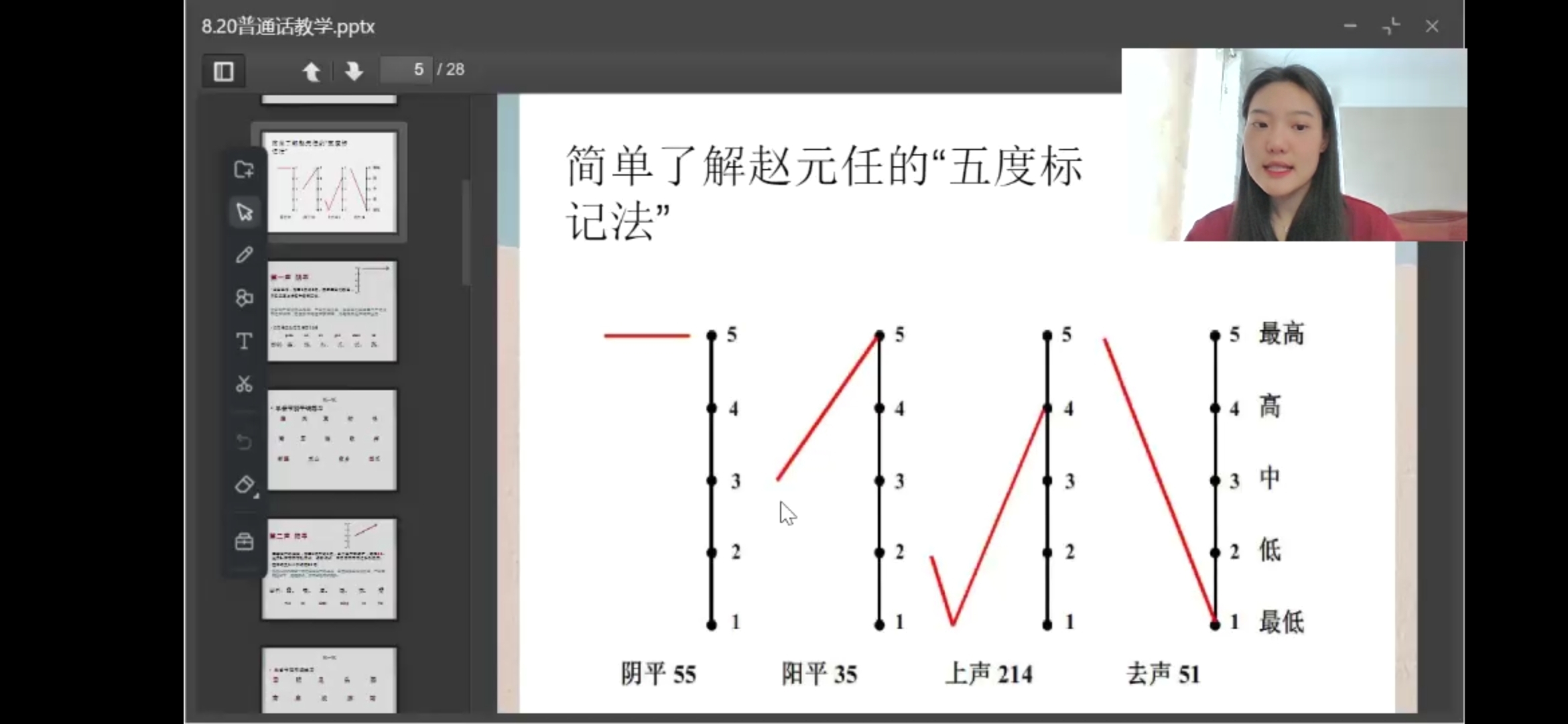 A班教师张志琪立足七年级学生的学习能力,精简教学方法,结合动画生动讲解赵元任“五度标记法”,通过教师示范读、全体学生跟读、部分学生举手例读“三读”方法,最大程度的通过线上课堂帮助同学们促进理解,加深记忆,尽快掌握。同时,针对七年级学生即迈入初中、迎来青春期的实际情况,张志琪推荐自己在该年龄段的阅读书目,鼓励学生在学习生活之余,多读书丰富精神世界,接触有声图书,对比个人发音从而提升普通话水平。