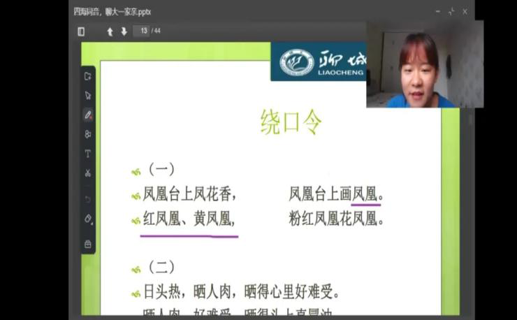 推普助力振兴 因材施教教学。面向新疆教师,授课教师以“四海同音,聊喀一家亲”为切入口,从普通话的语音特征、语流音变、常见的错误、朗读命题说话等多方面来进一步诠释如何更好发挥普通话的积极作用。