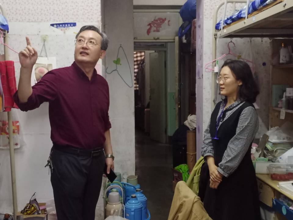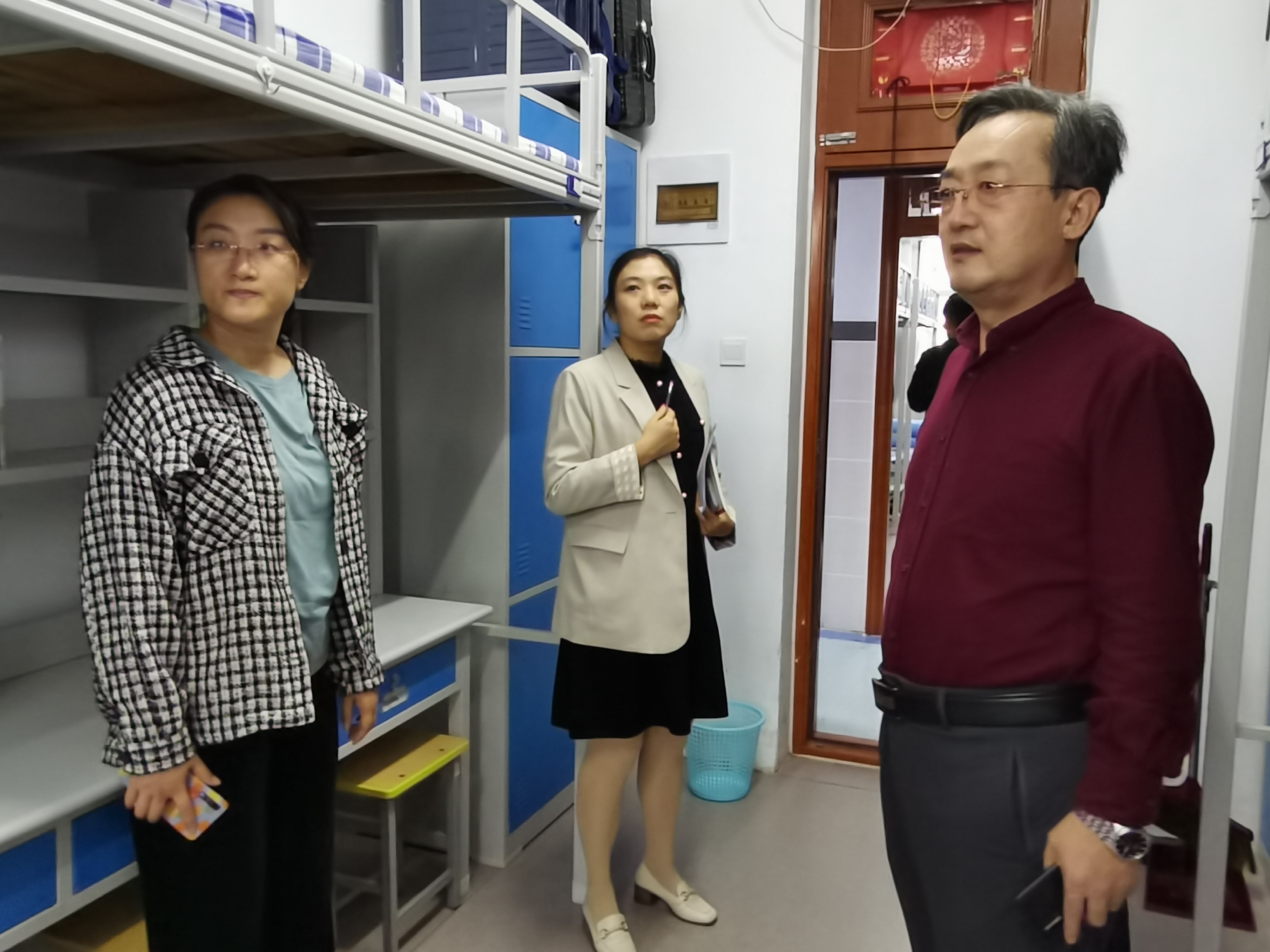 走访过程中,英国上市公司365各位领导老师前往走访各年级宿舍,仔细询问同学们的生活卫生状况,认真排查宿舍存在的安全隐患问题。“住宿条件满意吗?餐厅的饭吃得顺口吗?课堂上能跟上老师的进度吗?”在走访大一新生宿舍时,于东恩细心询问新生入校后住宿、就餐、学习等各方面的问题,密切关注新生的生活需求与身心发展,反复叮嘱新生要增强宿舍安全意识,保持宿舍内务整洁,定期定时消毒通风,以干净舒适的宿舍环境迎接崭新的大学生活。走访其他年级学生宿舍时,领导老师们不仅强调宿舍内务及安全卫生问题,更是殷切关注学生的学习状况。石勇询问大四毕业生的考研、考公、毕业论文等各项工作的进展情况,关注毕业生未来发展的方向。贾瑞清强调,保持宿舍内务整洁卫生,是营造良好的宿舍学习氛围的前提条件。领导老师们认真负责、耐心细心排查后,对整洁干净的宿舍提出表扬与鼓励,对存在问题的宿舍进行教育并亲自指导,尽显对学生的关怀之情。