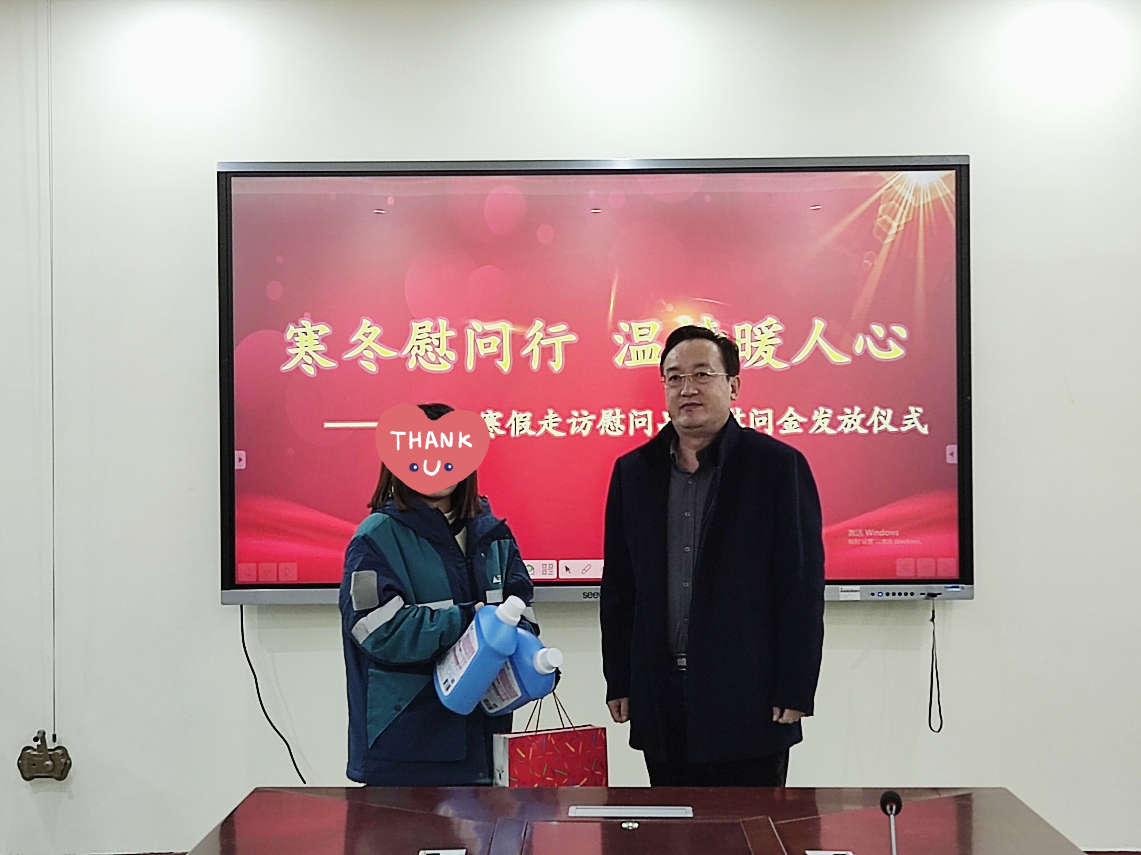 会议期间,主持人孙哲宣布仪式正式开始,并介绍本次活动的目的及意义。李成虎发表讲话,为同学们送上鼓励及新年祝福。李成虎嘱托同学们要常怀感恩之心,自强不息,用自己的努力取得好成绩,来回报祖国,回报社会。于东恩发表讲话,他鼓励同学们不要被眼前暂时的困难打倒,下定决心,明确目标,用自己的奋斗去书写自己的人生,并且为同学们送上新年祝福以及美好祝愿。领导和老师们一起为家庭经济困难、学习困难、就业创业困难、心理问题等特殊学生发放慰问金及慰问品。受资助同学表示深受感动,一定会牢记国家和社会的帮助,牢记领导和老师们的嘱托,不负期许,不负韶华,努力奋斗。