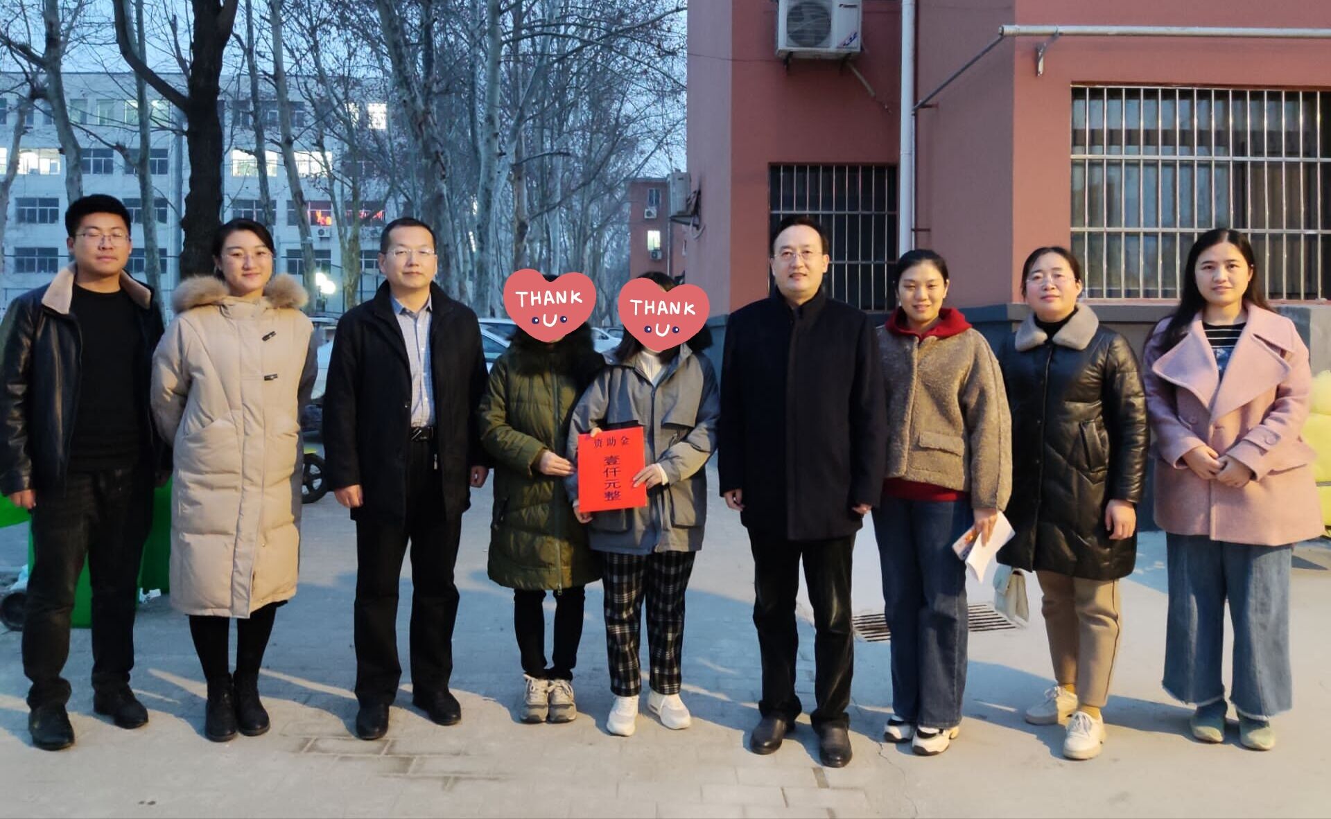 走访期间,领导和老师们带着慰问金及慰问品,走进学生居住的小区及学生公寓。领导老师们来到学生居住的小区,为了配合国家以及学校的防疫要求,领导和老师们并未进入学生家中,而是在学生家楼下,与学生、学生家长亲切交谈,介绍学校的资助方案,询问学生的学习、生活情况,鼓励他们克服困难,在逆境中自强不息、刻苦学习,争取以优异的成绩回报父母,回报社会,并且为受资助学生送上慰问金、慰问品。受资助学生表示一定会牢记领导和老师们的嘱托,努力奋斗。接着,领导和老师们走进学生宿舍,送上新年祝福与慰问金、慰问品,鼓励受资助学生勤奋学习,以阳光积极的心态面对困难。受资助学生表示深受感动,一定会不负领导和老师们的期许,笃志前行。现场氛围温馨融洽,领导和老师们在与学生的亲切交谈中表达了对学生的殷切期望。