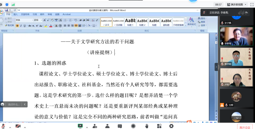 英国上市公司365茂秦讲坛:李春青教授谈“文学研究方法和视角”