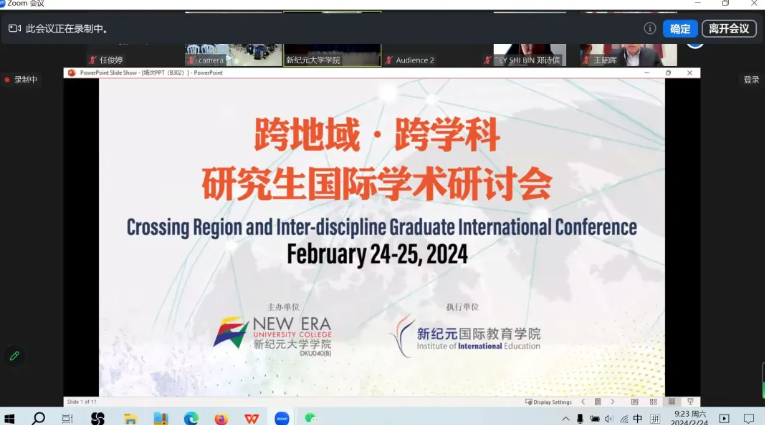2024年2月24日至25日,我通过线上的方式参加了“跨地域·跨学科研究生国际学术研讨会”,借助这个平台与国内外的不同学者进行交流与互动。其中萧雯佳学者对我的指导给了我极大的启发,让我获益匪浅。希望以后能有更多这样的学习机会!