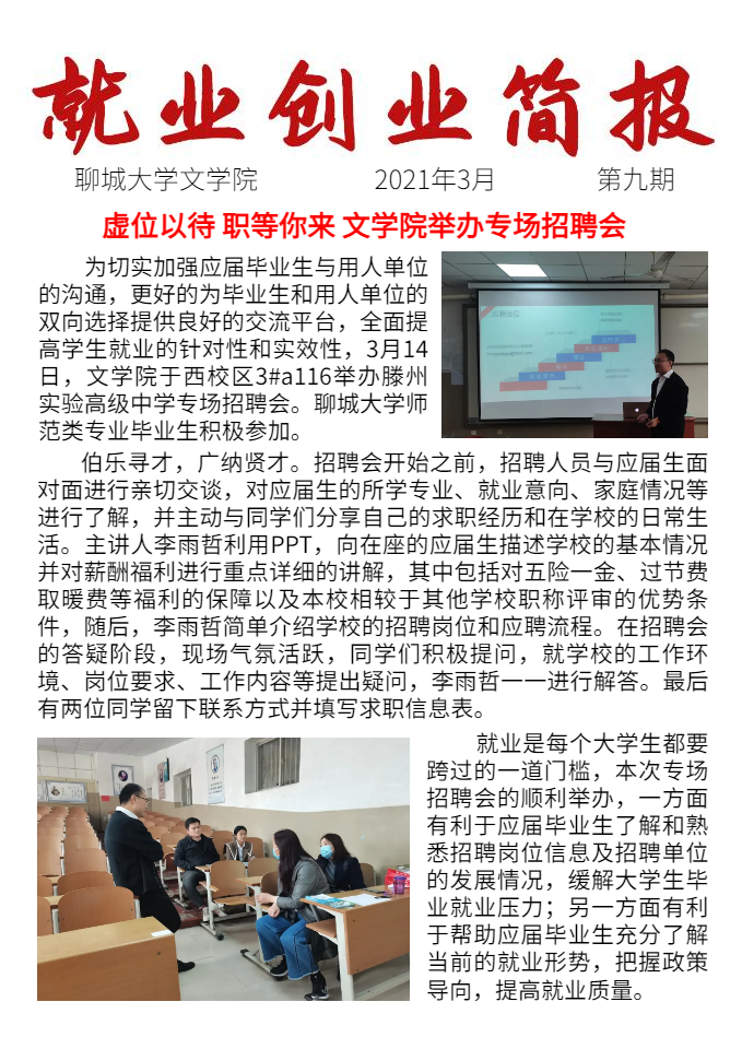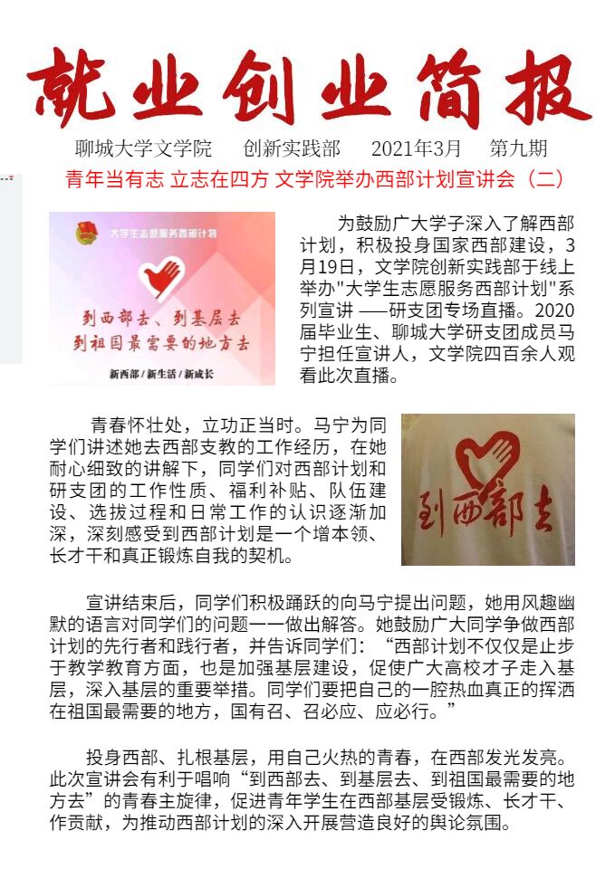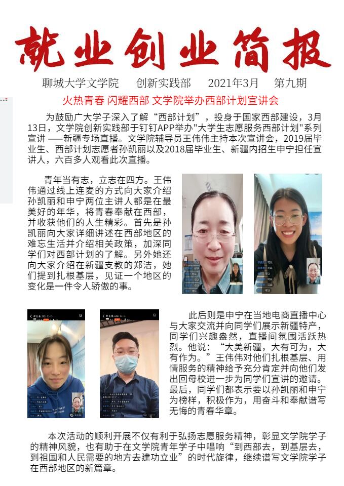 创新实践部第九期就业创业简报